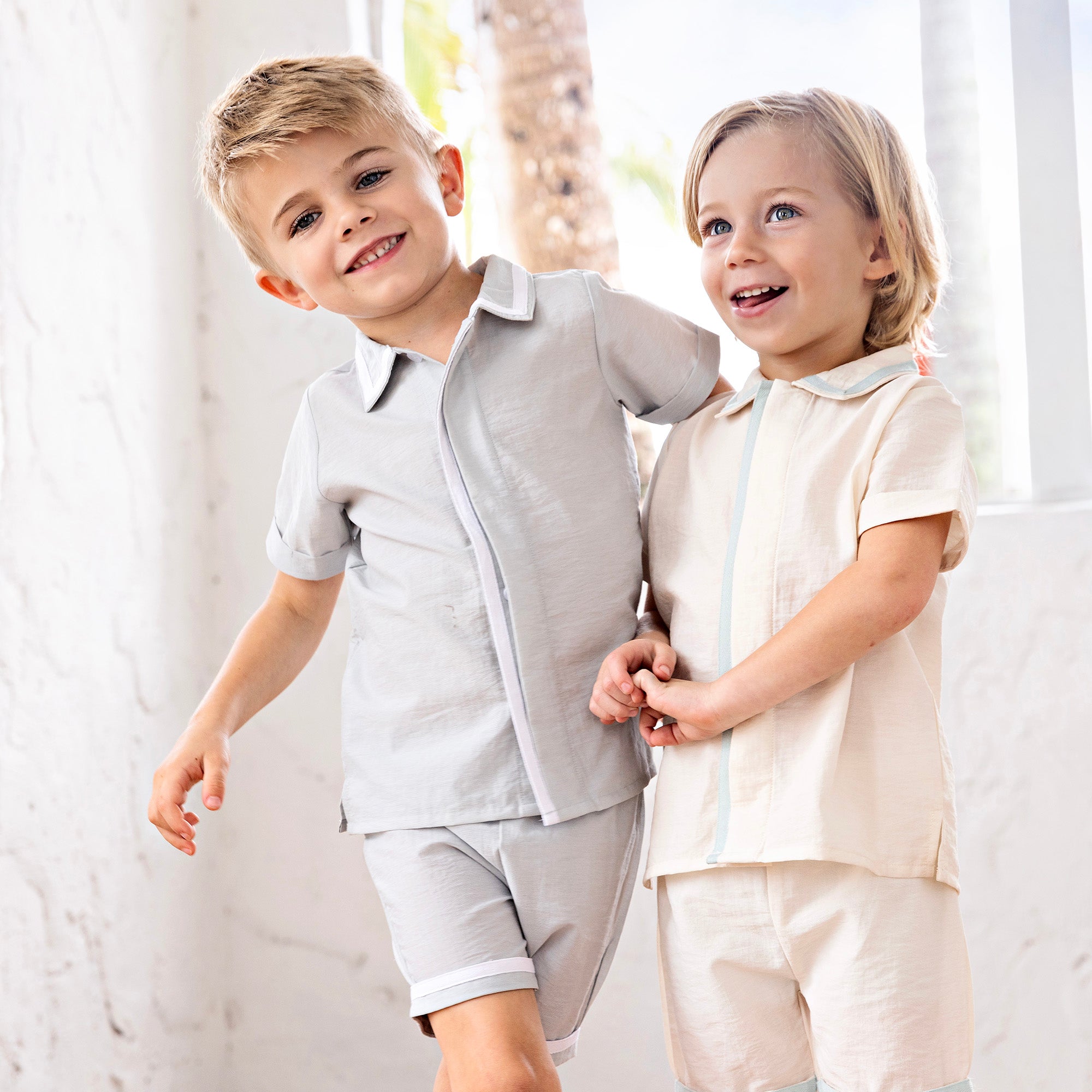 The Bennet Boys Collar Shirt + Short Pants Set is a timeless two piece outfit designed with clean lines and thoughtful details. The structured collar shirt features a tailored short sleeve silhouette, paired with coordinating pull on shorts with an elastic waistband for comfort and ease.