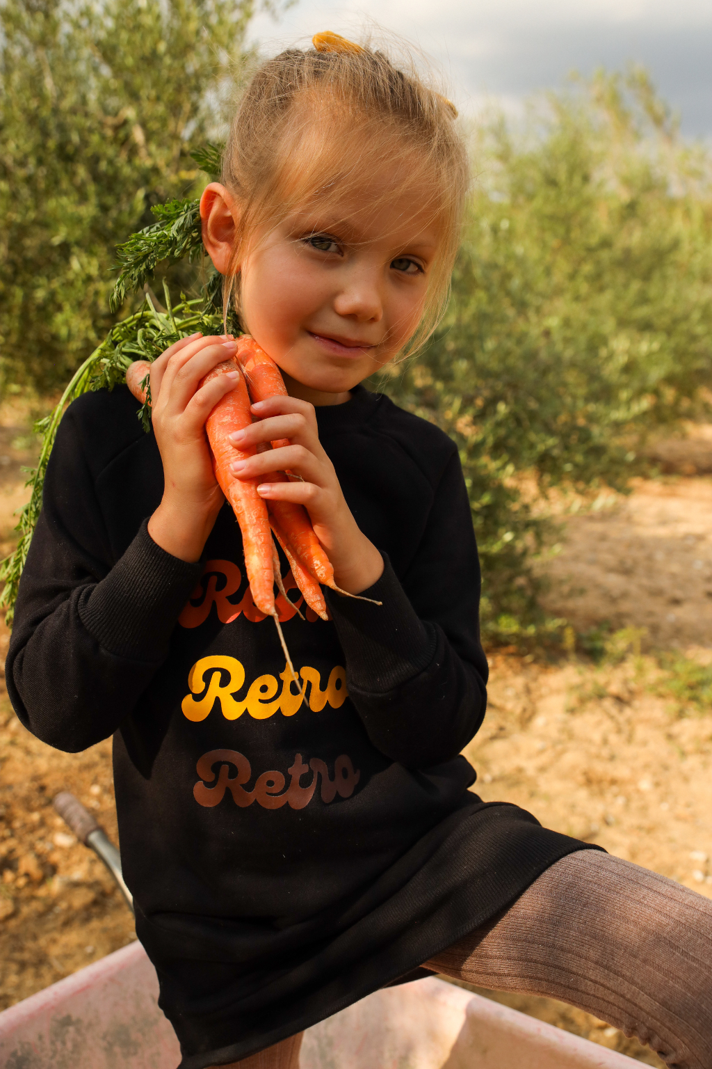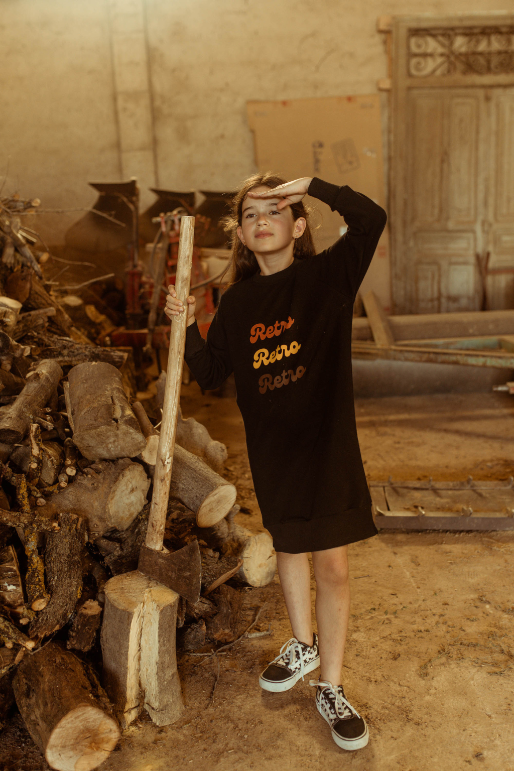 Our Sweatshirt Dress is crafted with cotton for comfort. It features multicolored RETRO wording for a modern twist and fashionable look. Perfect for everyday wear and lounging around.